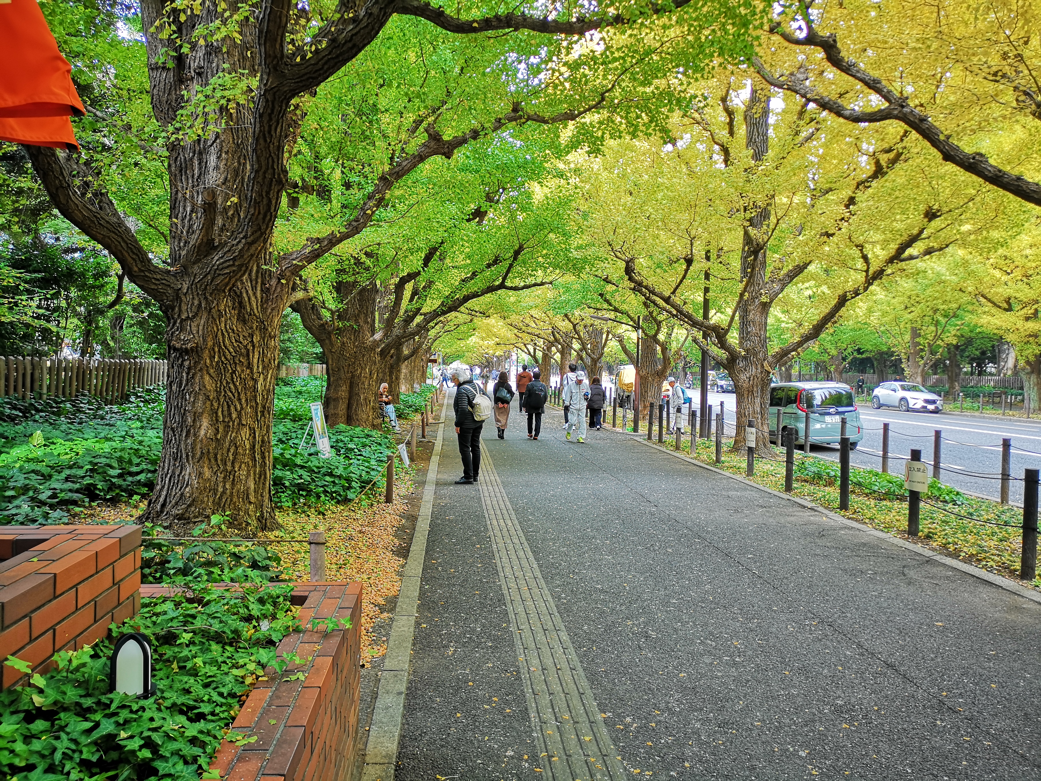 Photo 2. Promenade à Tokyo, à l'ombre des Ginkgo biloba, considérés comme l’un des plus anciens arbres du monde.